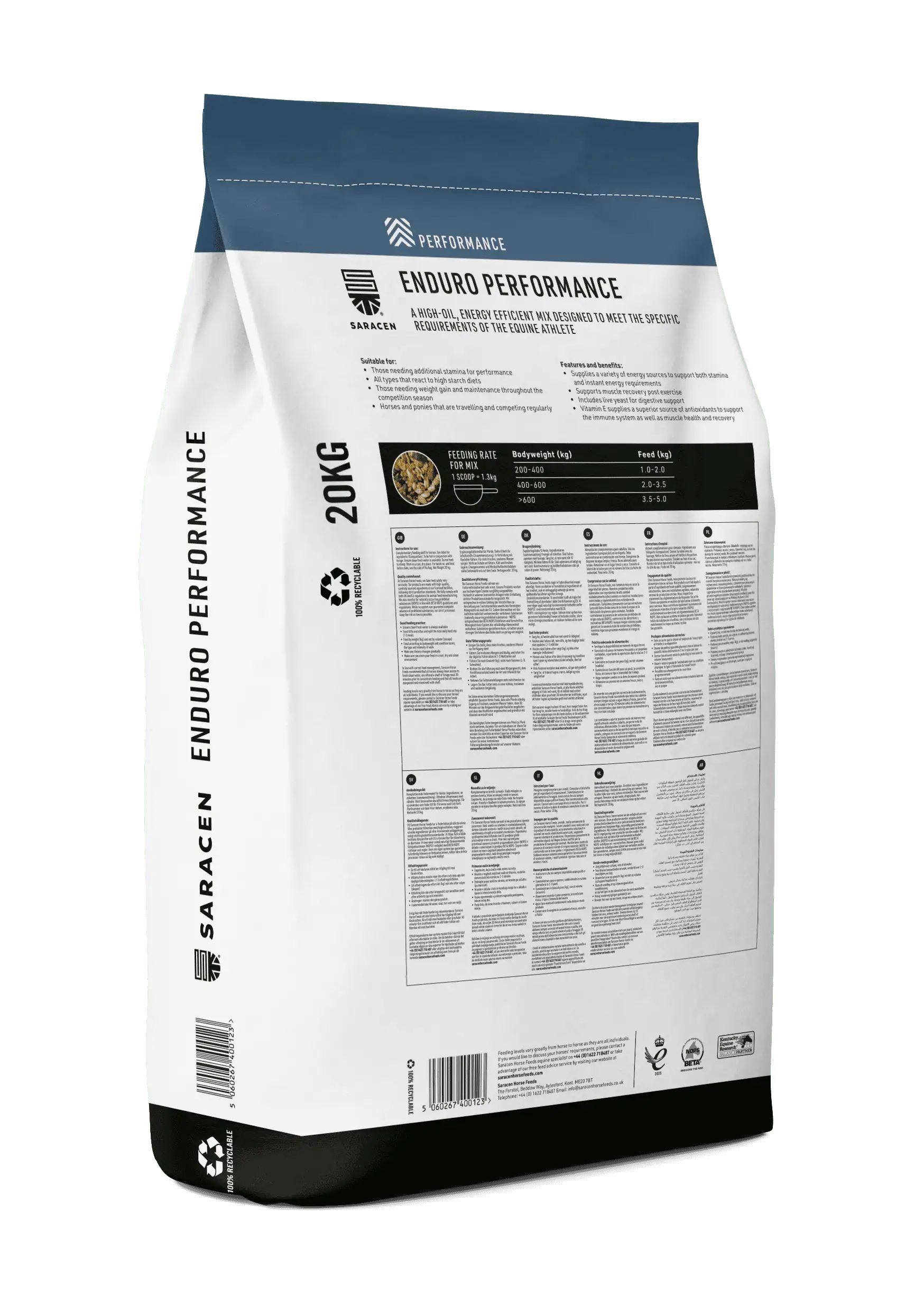 Stöd för uthållighet. Innehåller mikroniserade spannmål, betmassa, hög fetthalt, lysin.